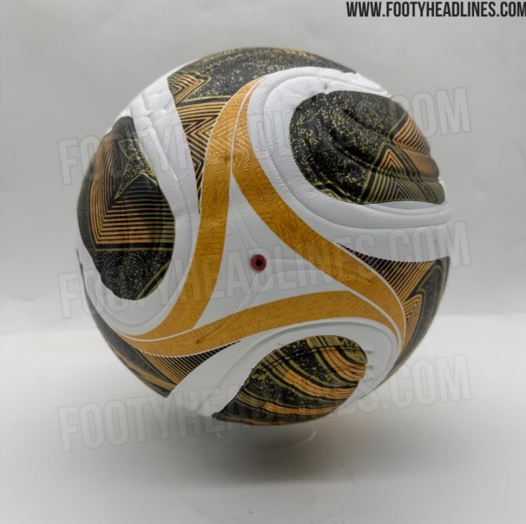 3月26日讯 足球装备网站footyheadline曝光世界杯决赛用球,该款足球以白色为底,搭配黑色和金色。